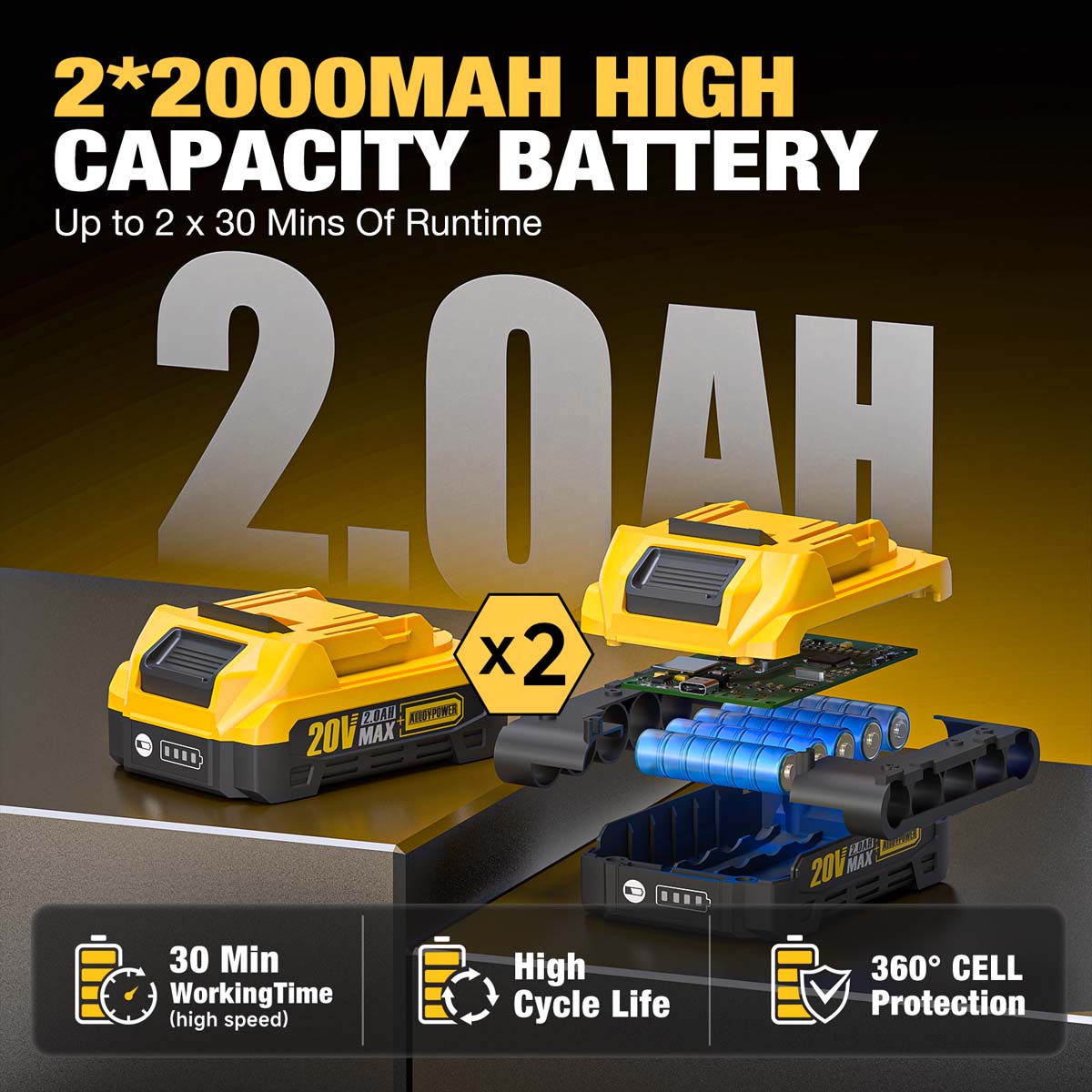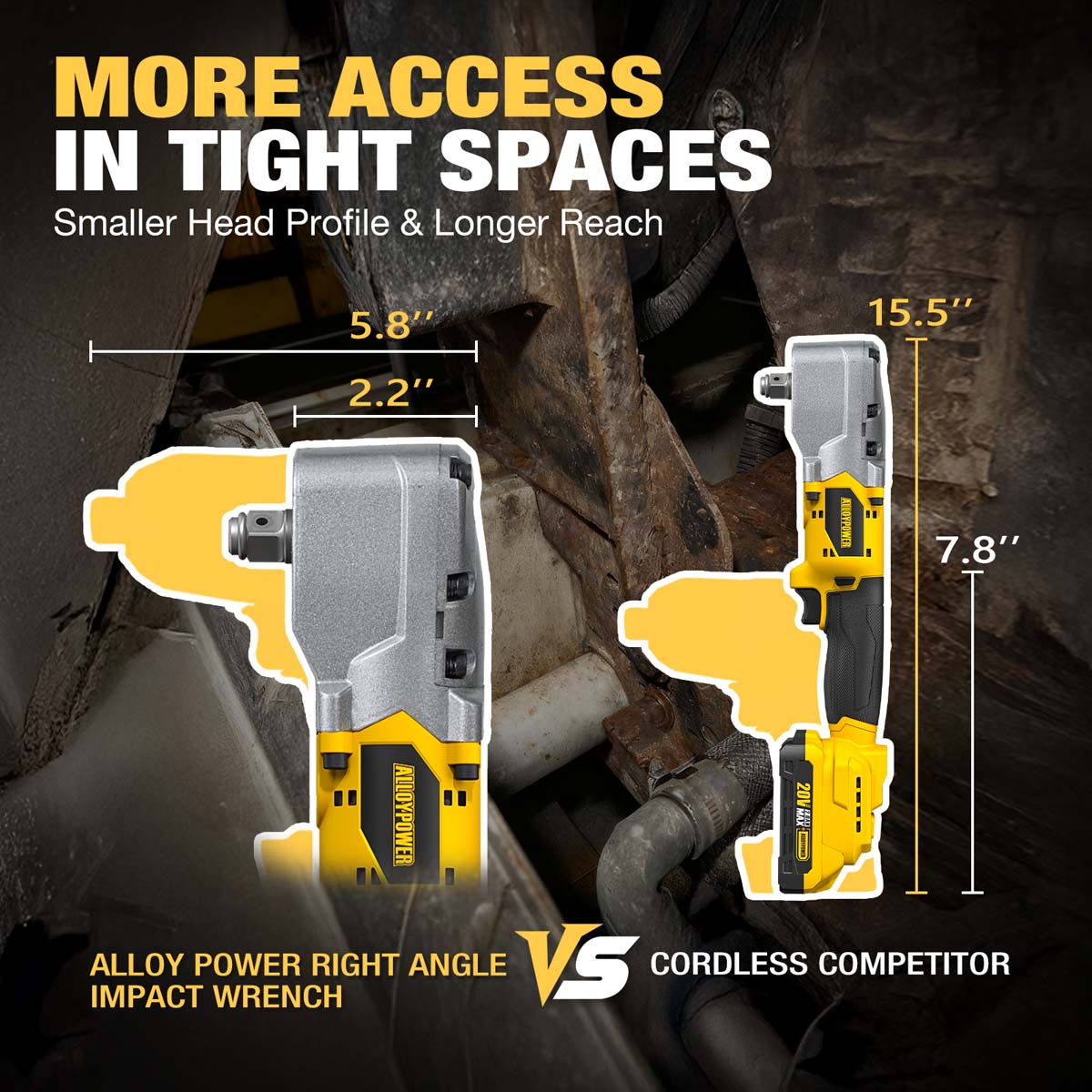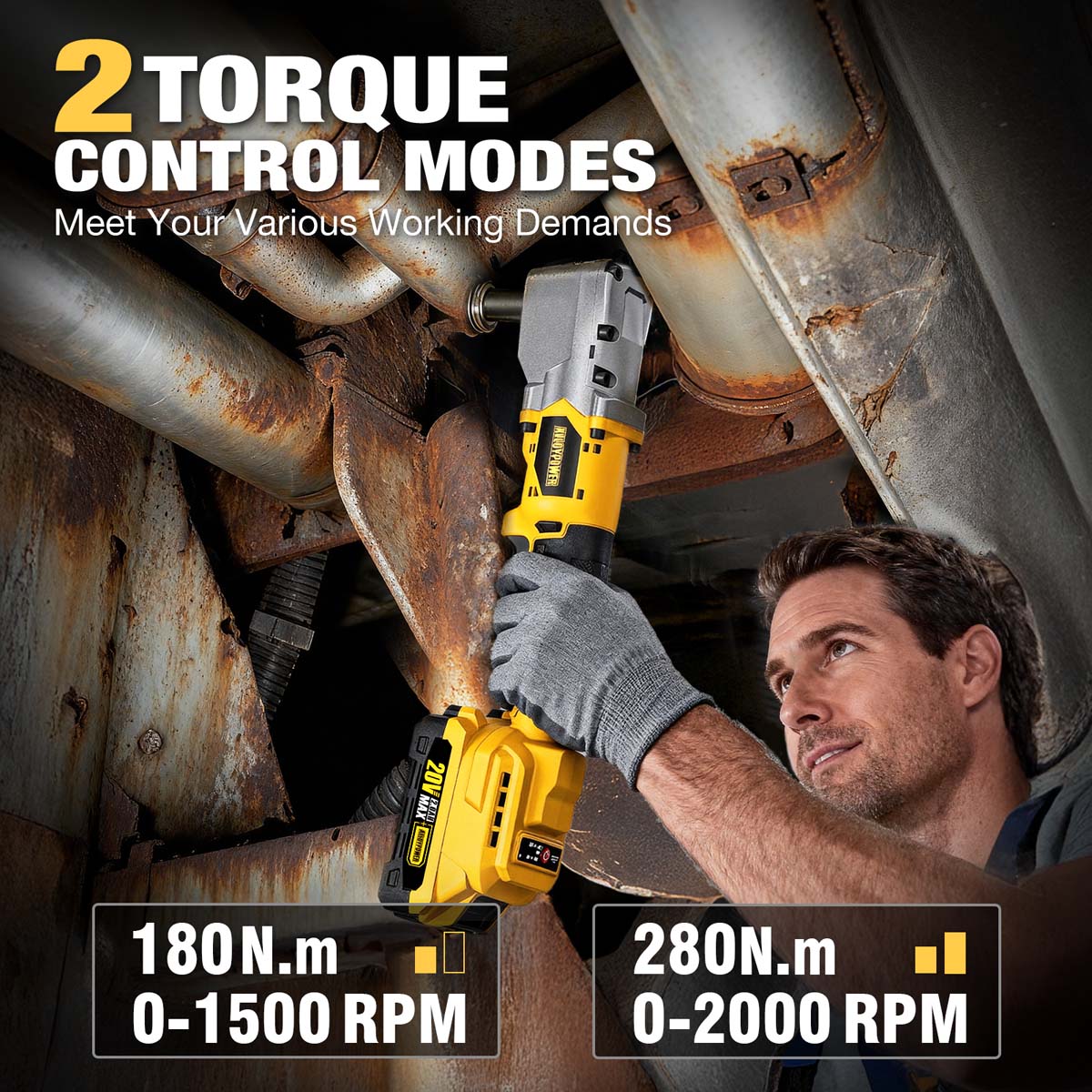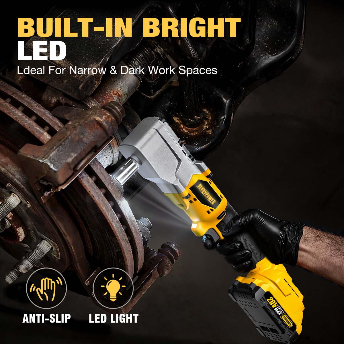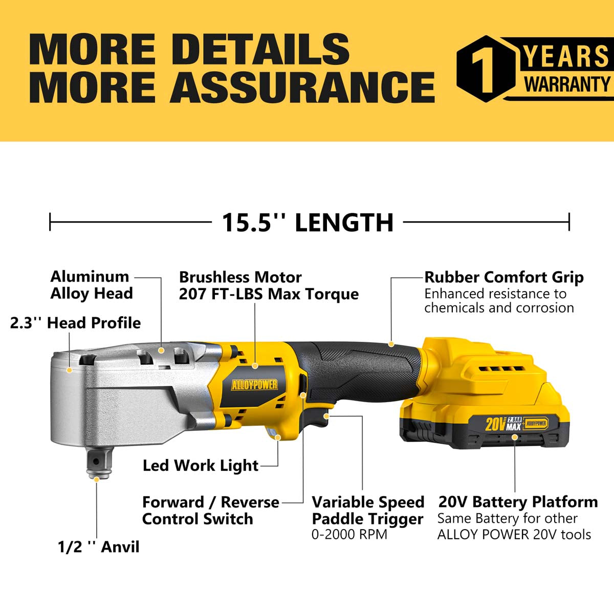 ALLOYMAN 20V Brushless Right Angle Wrench - 280N.M High Torque with 2×2.0Ah Batteries