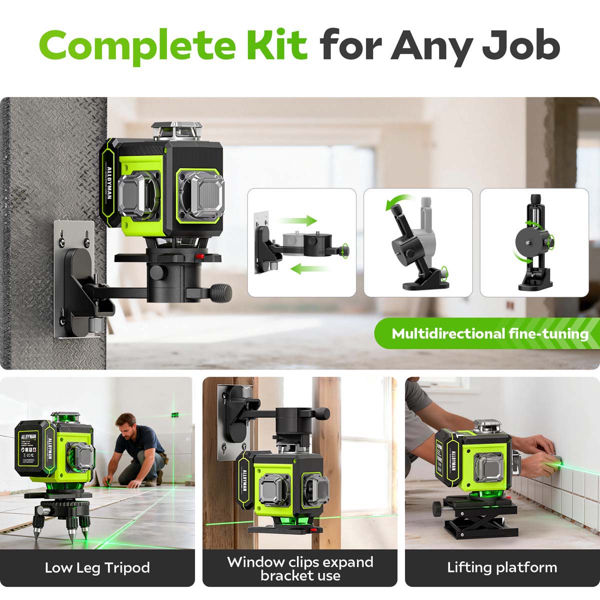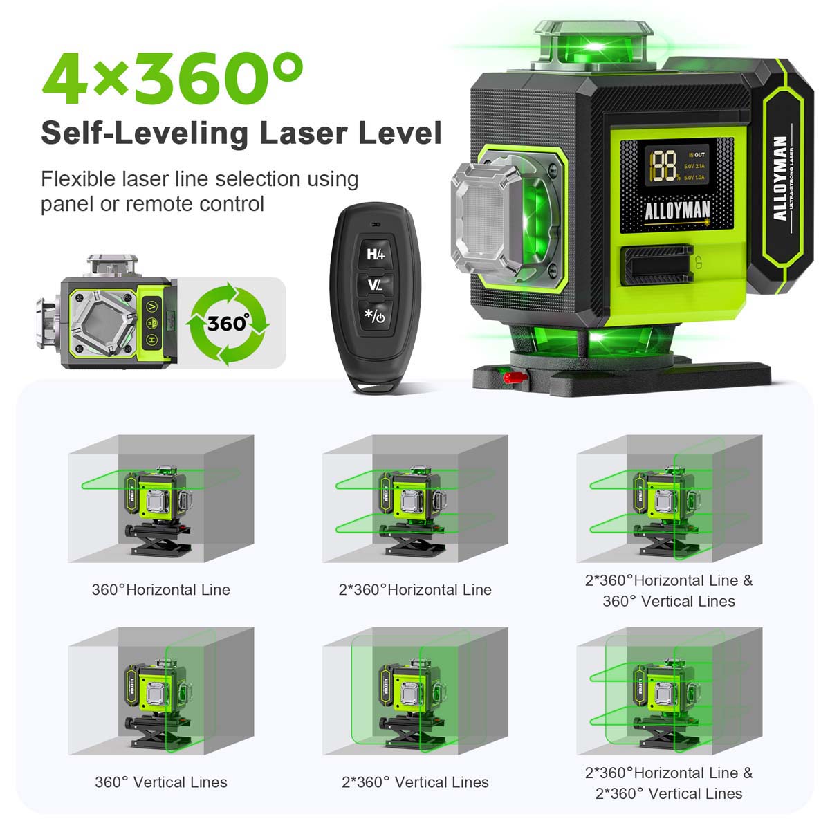 Alloyman Green 4 × 360° Laser Level with Tripod - Carrying Bag Included
