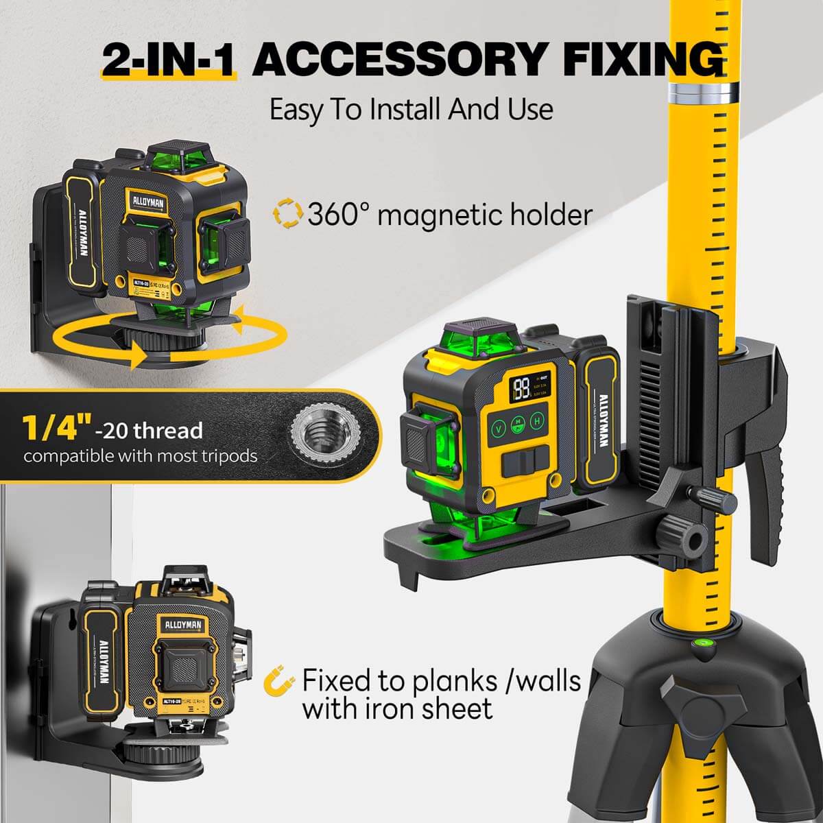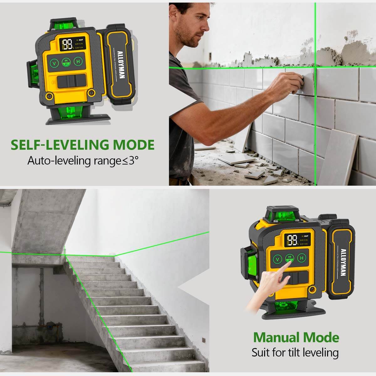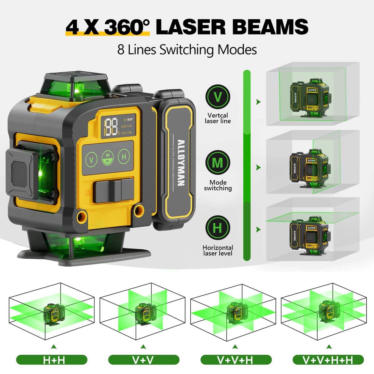 Alloyman 4x360°Self Leveling Laser Level, 12 Ft./3.7M Professional Laser Level Pole with Tripod, Green Line Lazer Leveler Tool