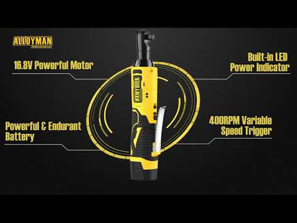 Alloyman 16.8V Extended Ratchet Wrench 400 RPM 3/8 Inch with 2-Pack 2.0Ah Li-Ion Batteries
